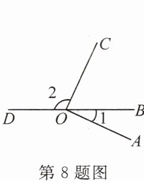 8. 如图,点$B$,$O$,$D$在同一条直线上.若$∠AOC=90^{\circ}$,$∠2=115^{\circ}$,则$∠1$的度数为