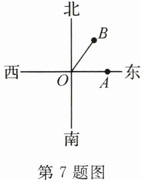 7. 如图,船$A$在灯塔$O$的正东方向,船$B$在灯塔$O$的北偏东$35^{\circ}48'$方向,则$∠AOB$的度数是