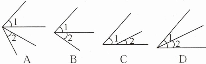 1. 用“叠合法”比较$∠1$与$∠2$的大小,下列放置方法正确的是(