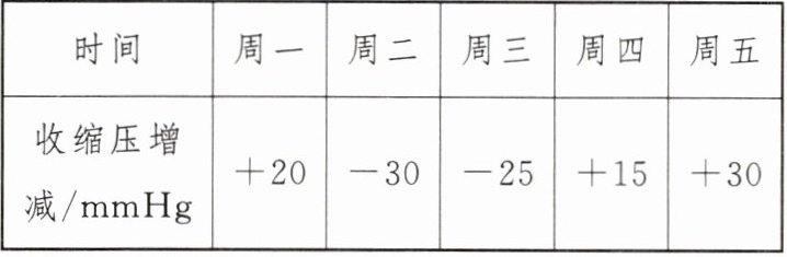 8. 某病人每天下午需要测量血压,该病人上周日收缩压为$120mmHg$.下表是该病人这周每天与前一天相比,收缩压的变化情况,则该病人本周五的收缩压是