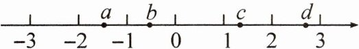 8. 有理数 $a,b,c,d$ 在数轴上的对应点的位置如图所示,则 $abc$