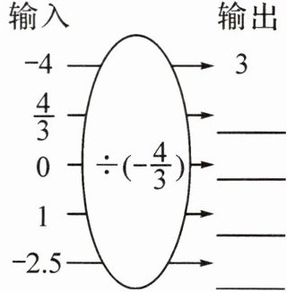 7. 石家庄外国语校本经典题 将输入的数分别除以 $-\frac{4}{3}$,请在横线上写出输出的数。