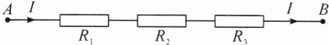 11. (2024·广州)如图,把 $R_{1},R_{2},R_{3}$ 三个电阻串联起来,线路 $AB$ 上的电流为 $I$,电压为 $U$,则 $U = IR_{1}+IR_{2}+IR_{3}$.当 $R_{1}=20.3$, $R_{2}=31.9$, $R_{3}=47.8$, $I = 2.2$ 时,$U$ 的值为