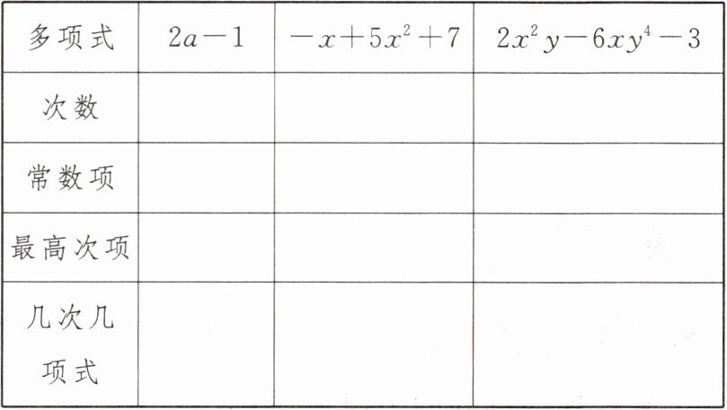 9. A|石家庄外国语校本经典题 用多项式填空,并指出它们的项和次数.