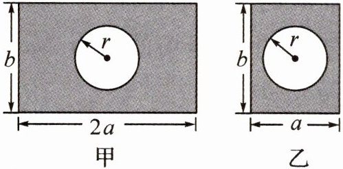 14. 兰生复旦校本经典题如图,在甲、乙两面墙壁上各挖去一个半径相同的圆形空洞,用来安装窗花,其余部分涂满油漆,则根据图中所标尺寸,两面墙上的油漆面积一共为