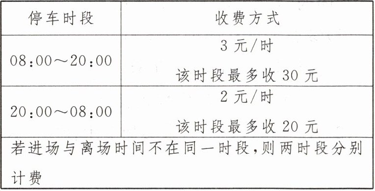 13. 新考向 真实情境 乐乐停车场为24小时营业,其收费方式如下表所示:
