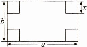 13. 如图,小明想把一张长为 $ a $,宽为 $ b $ 的长方形硬纸片做成一个无盖的长方体盒子,于是在长方形纸片的四个角各剪去一个边长为 $ x $ 的小正方形,用代数式表示纸片剩余部分的周长为(