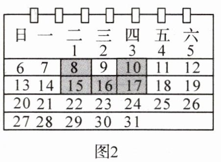 操作发现:图1是2024年10月的月历,小宇用带阴影的"十"字框框中5个数.