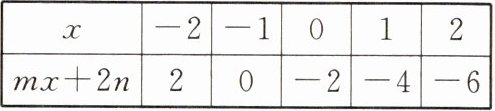 11. 整式 $ mx + 2n $ 的值随 $ x $ 的取值不同而不同,下表是当 $ x $ 取不同值时对应的整式的值,则关于 $ x $ 的方程 $ -mx - 2n = 2 $ 的解为(