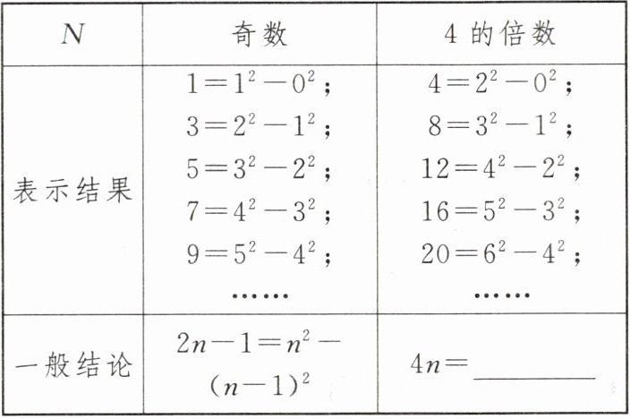 15. (2024·安徽)数学兴趣小组开展探究活动,研究了“正整数$N$能否表示为$x^{2}-y^{2}$($x,y$均为自然数)”的问题.