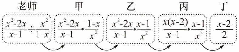 14. 老师设计了接力游戏,用合作的方式完成分式化简,规则:每人只能看到前一人给的式子,并进行一步计算,再将结果传递给下一人,最后完成化简。过程如图所示: