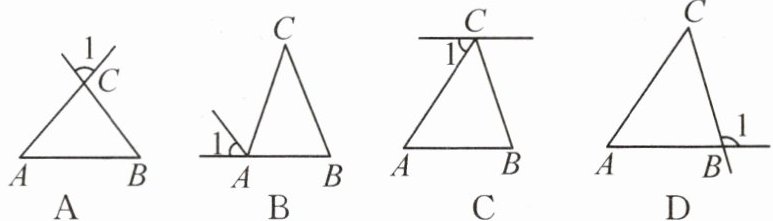 1. 图中,$\angle 1$是$\triangle ABC$的外角的是(