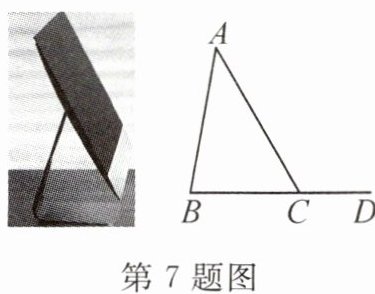 7. 新考向 真实情境 如图,这是一台放置在水平桌面上的电脑显示屏,将其侧面抽象成平面几何图形,测得$\angle ACD = 120^{\circ}$,$\angle ABC = 2\angle BAC$,则$\angle ABC =$
