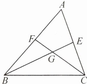 【例】(教材 P22 复习题 T8 节选)如图,$ \triangle ABC $ 的 $ \angle ABC $ 和 $ \angle ACB $ 的平分线 $ BE $,$ CF $ 相交于点 $ G $。求证:$ \angle BGC = 90^{\circ} + \frac{1}{2}\angle A $。