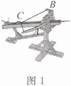 问题:图1为中国古代一种强弩图,图2为这种强弩图的部分组件的示意图。若$\angle A = 1$矩,$\angle B = 1$欘,则$\angle C = $________。