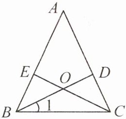 (2)若$\triangle BEC\cong\triangle CDB$,求$\angle 1$的度数.