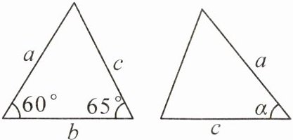 12. 人大附中校本经典题 图中的两个三角形全等,则$\angle\alpha =$( )