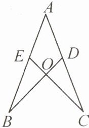 3. 石家庄外国语校本经典题 如图,AB = AC,AD = AE,BD 与 CE 相交于点 O. 求证:△AEC≌△ADB.