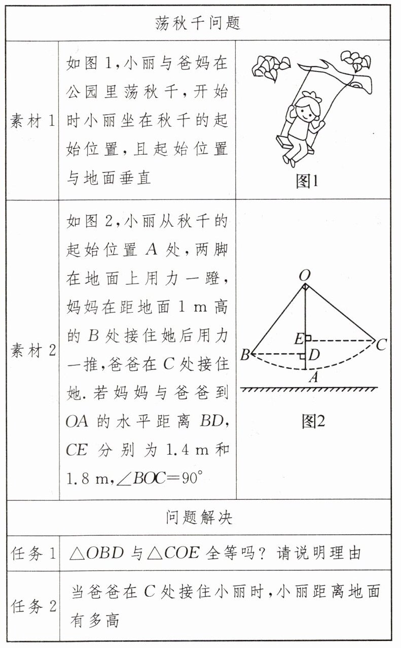 ∴△OBD≌△COE(AAS).任务2:设OA的延长线与地面相交于点M.由任务1可知,△OBD≌△COE,