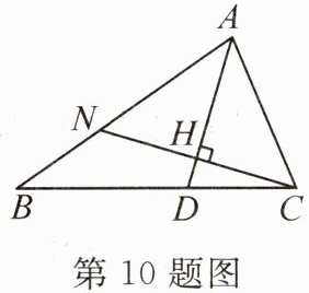 10. 如图,在$\triangle ABC$中,$\angle BAC$的平分线$AD$交$BC$于点$D$,过点$C$作$CN\perp AD$交$AD$于点$H$,交$AB$于点$N$。若$AB = 5$,$AC = 3$,则$BN=$