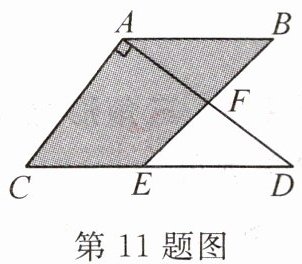 11. 如图,在$\triangle ACD$中,$\angle CAD = 90^{\circ}$,$AC = 6$,$AD = 8$,$AB// CD$,$E$是$CD$上一点,$BE$交$AD$于点$F$。若$AB = DE$,则图中阴影部分的面积为