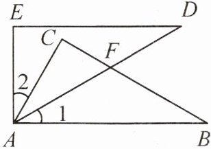 12. 如图,在$\triangle ABC$和$\triangle ADE$中,$\angle C=\angle E$,$AC = AE$,$\angle 1=\angle 2$,$AD$,$BC$相交于点$F$。