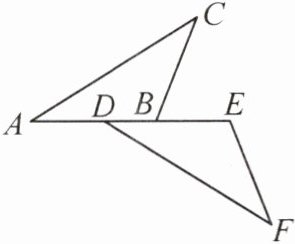 4. 新考向 开放性问题 如图,$\triangle ABC$的顶点$A$,$B$和$\triangle DEF$的顶点$D$,$E$在同一条直线上,且$\angle A = \angle EDF$,$\angle C = \angle F$,请再添加一个条件,使得$BC = EF$,并说明理由。