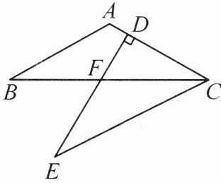 9. 如图,$CB$为$\angle ACE$的平分线,$F$是线段$CB$上一点,$CA = CF$,$\angle B = \angle E$,延长$EF$与线段$AC$相交于点$D$。