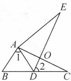 8. 如图,$\angle C = \angle E$,$AC = AE$,点$D$在边$BC$上,$\angle 1 = \angle 2$,$AC$和$DE$相交于点$O$。求证:$\triangle ABC≌\triangle ADE$。