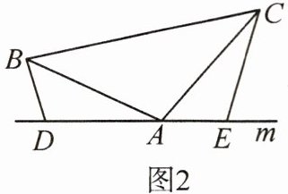 5. 石家庄外国语校本经典题 在直线m上依次取互不重合的三个点D,A,E,在直线m上方有AB=AC,且满足∠BDA=∠AEC=∠BAC=α.