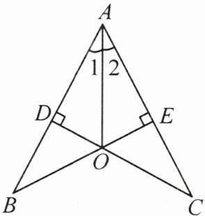 ∵∠1=∠2,OD⊥AB,OE⊥AC,