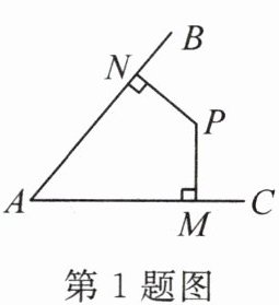 1. 如图,$PM \perp AC$于点$M$,$PN \perp AB$于点$N$,$PM = 2$。当$PN =$时,点$P$在$\angle BAC$的平分线上。