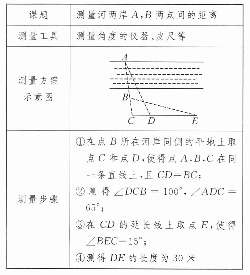 7. 新考向 真实情境 学习完全等三角形这章后,数学兴趣小组同学就“测量河两岸$A$,$B$两点间的距离”这一问题,设计了如下方案.