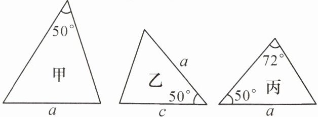 1. (2024·南充期末)下列各图中,$a$,$b$,$c$分别是三角形的边长,由甲、乙、丙三个三角形中标注的信息,能确定与$\triangle ABC$全等的是(