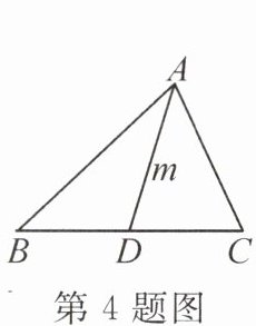 4. (2024·南充嘉陵区期末)如图,在$\triangle ABC$中,$AB=9$,$AC=7$,$D$是边$BC$的中点,则$AD$的长$m$的取值范围为