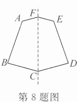 8. 如图,六边形 ABCDEF 是轴对称图形,CF 所在的直线是它的对称轴.若∠AFC+∠DCF=150°,则∠AFE+∠BCD=