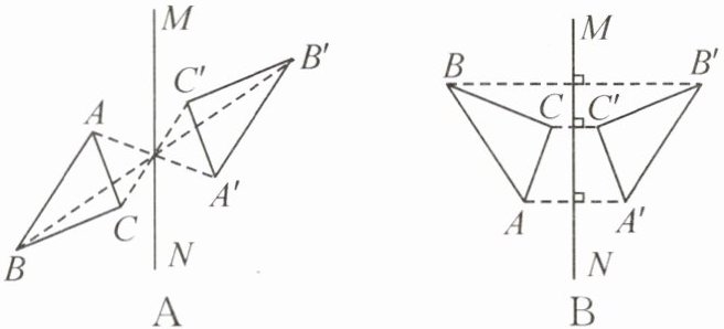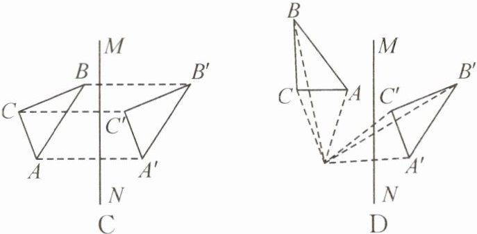 3. 下列图形中,△A′B′C′与△ABC 关于直线 MN 成轴对称的是(