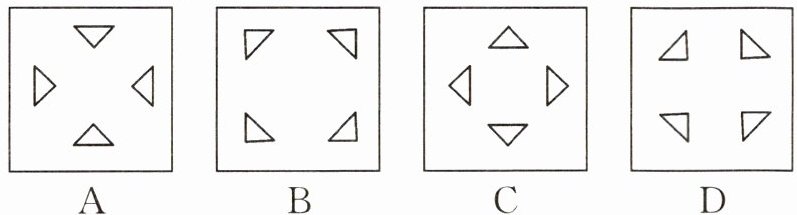 4. 把一张正方形纸片按图1、图2的方式对折两次后,再按图3的方式挖去一个三角形小孔,则展开后的图形是(