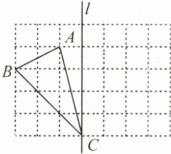 (1)在网格中画出与$\triangle ABC$关于直线$l$成轴对称的$\triangle A'B'C'$.