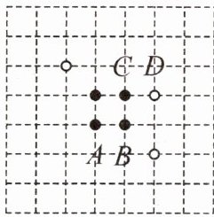 的位置,则所得的对弈图是轴对称图形.(填写$A$,$B$,$C$,$D$中的一处即可,$A$,$B$,$C$,$D$位于棋盘的格点上)