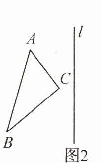 2. 在下列各图中画出$\triangle A'B'C'$,使$\triangle A'B'C'$与$\triangle ABC$关于直线$l$成轴对称.