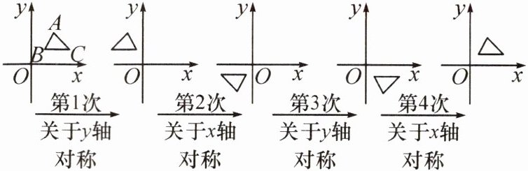 17. 新考向 推理能力 如图,在平面直角坐标系中,对$\triangle ABC$进行循环往复的轴对称变换.若原来点$A$的坐标为$(1,2)$,则经过第$2025$次变换后点$A$的对应点的坐标为()