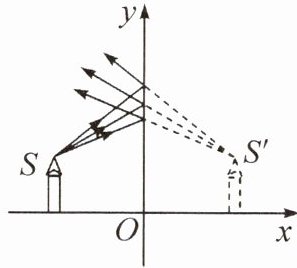 11. 新考向 跨学科 如图,这是蜡烛的平面镜成像原理图,以水平面为$x$轴,镜面侧面为$y$轴(镜面厚度忽略不计)建立平面直角坐标系.若某时刻火焰顶端$S$的坐标是$(x - 2,2)$,此时对应的虚像$S'$的坐标是$(3,y)$,则$3x + y=$(