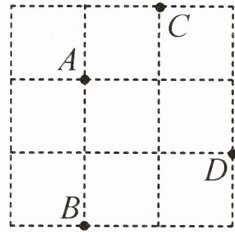 13. 如图,在$3×3$的正方形网格中有四个格点$A$,$B$,$C$,$D$,以其中一个点为原点,网格线所在直线为坐标轴,建立平面直角坐标系,使其余三个点中存在两个点关于一条坐标轴对称,则原点可能是(