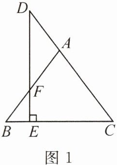 13. 如图 1,在△ABC 中,AB = AC,D 为 CA 延长线上一点,且 DE⊥BC 交 AB 于点 F.