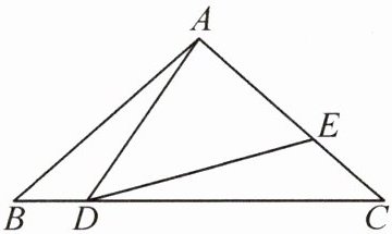 14. 如图,在△ABC 中,AB = AC,∠B = 40°,点 D 在线段 BC 上运动(点 D 与 B,C 两点不重合),连接 AD,作∠ADE = 40°,DE 交线段 AC 于点 E.