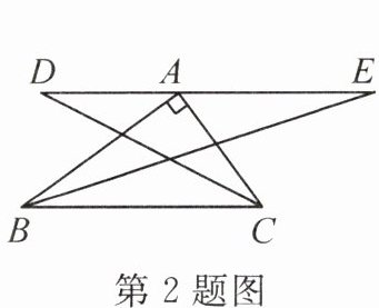 2. 如图,在△ABC中,∠BAC=90°,AC=6,AB=8,过点A的直线DE//BC,∠ABC与∠ACB的平分线分别交DE于点E,D,则DE=(