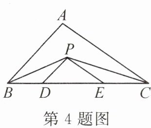 4. 如图,在△ABC中,BC=15 cm,BP,CP分别是∠ABC和∠ACB的平分线,且PD//AB,PE//AC,则△PDE的周长为