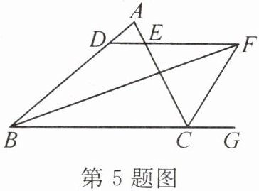 5. 如图,∠ABC的平分线BF与△ABC的外角∠ACG的平分线相交于点F,过点F作DF//BC交AB于点D,交AC于点E.若BD=7 cm,CE=5 cm,则DE的长为