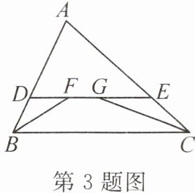 3. 如图,在△ABC中,DE//BC,∠ABC和∠ACB的平分线分别交DE于点F,G.若FG=2,DE=6,则DB+EC的值为